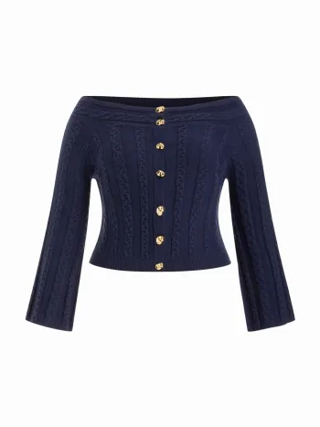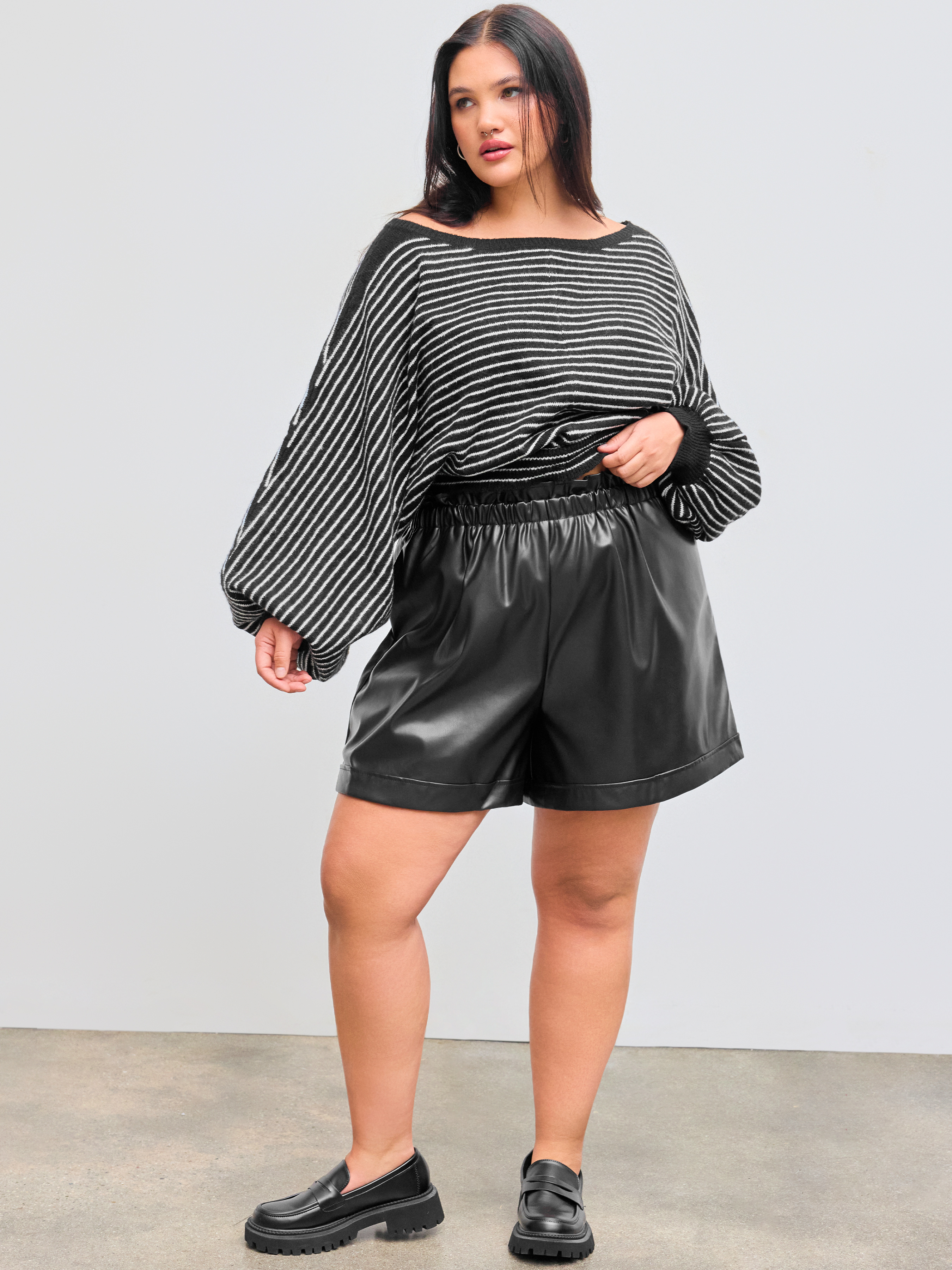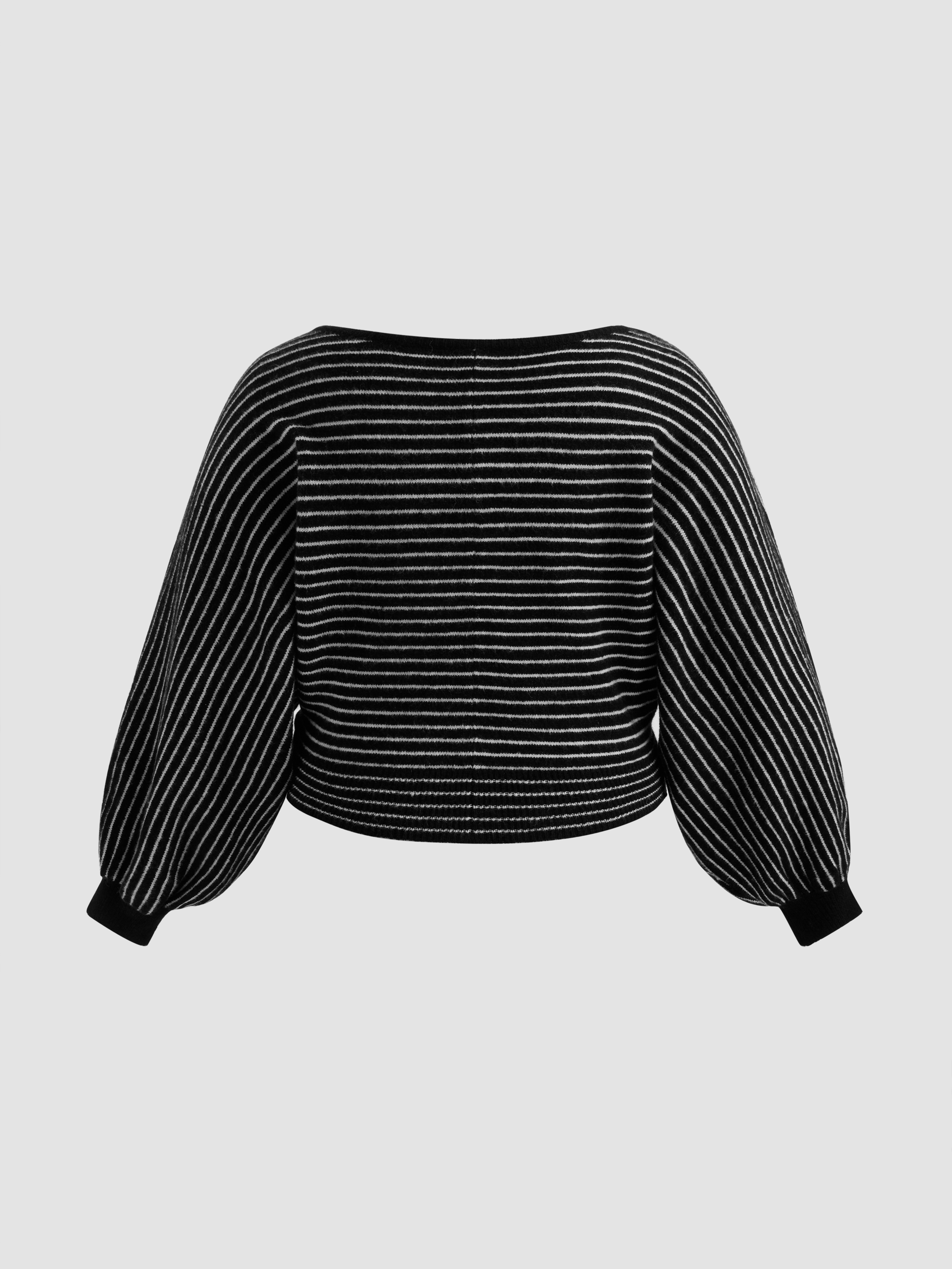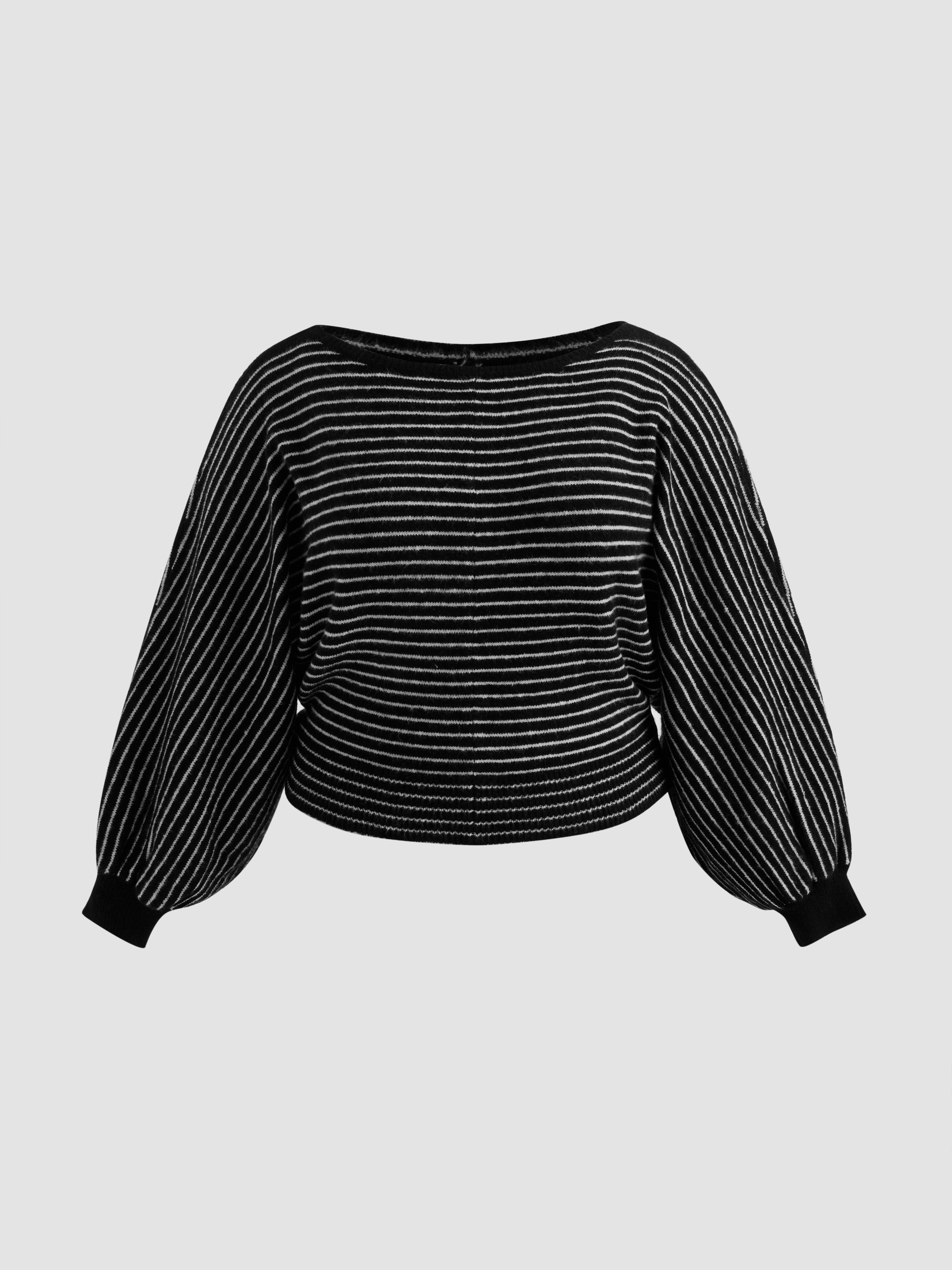 Maglione oversize a righe in misto lana con scollo a barca Curve & Plus
