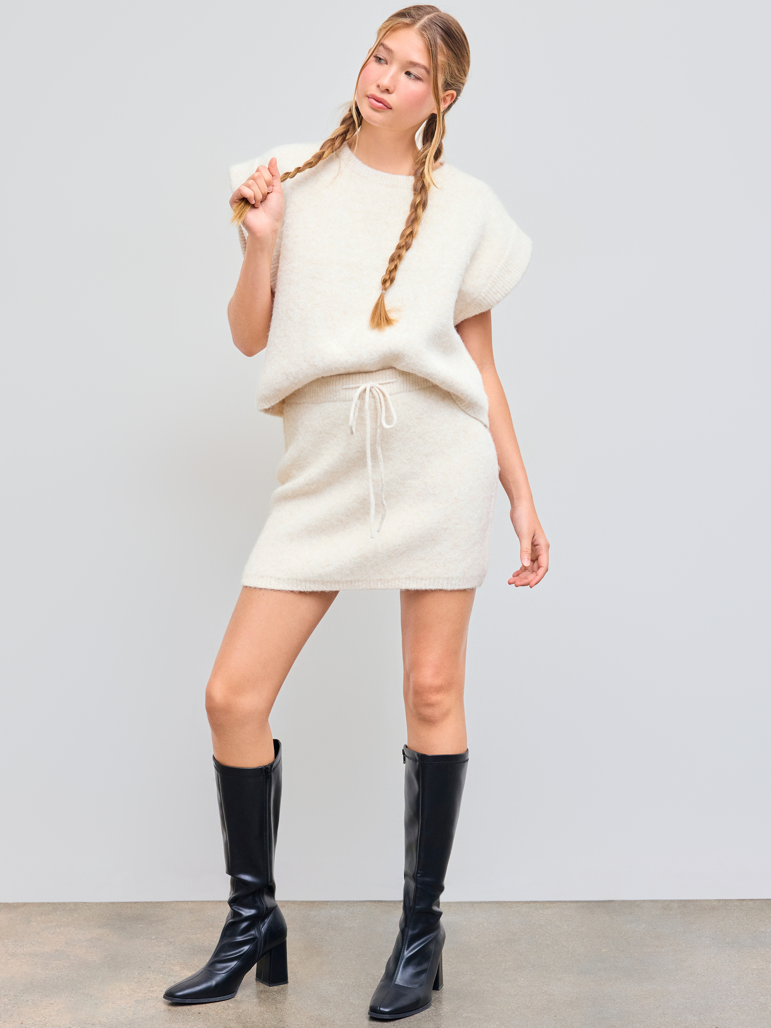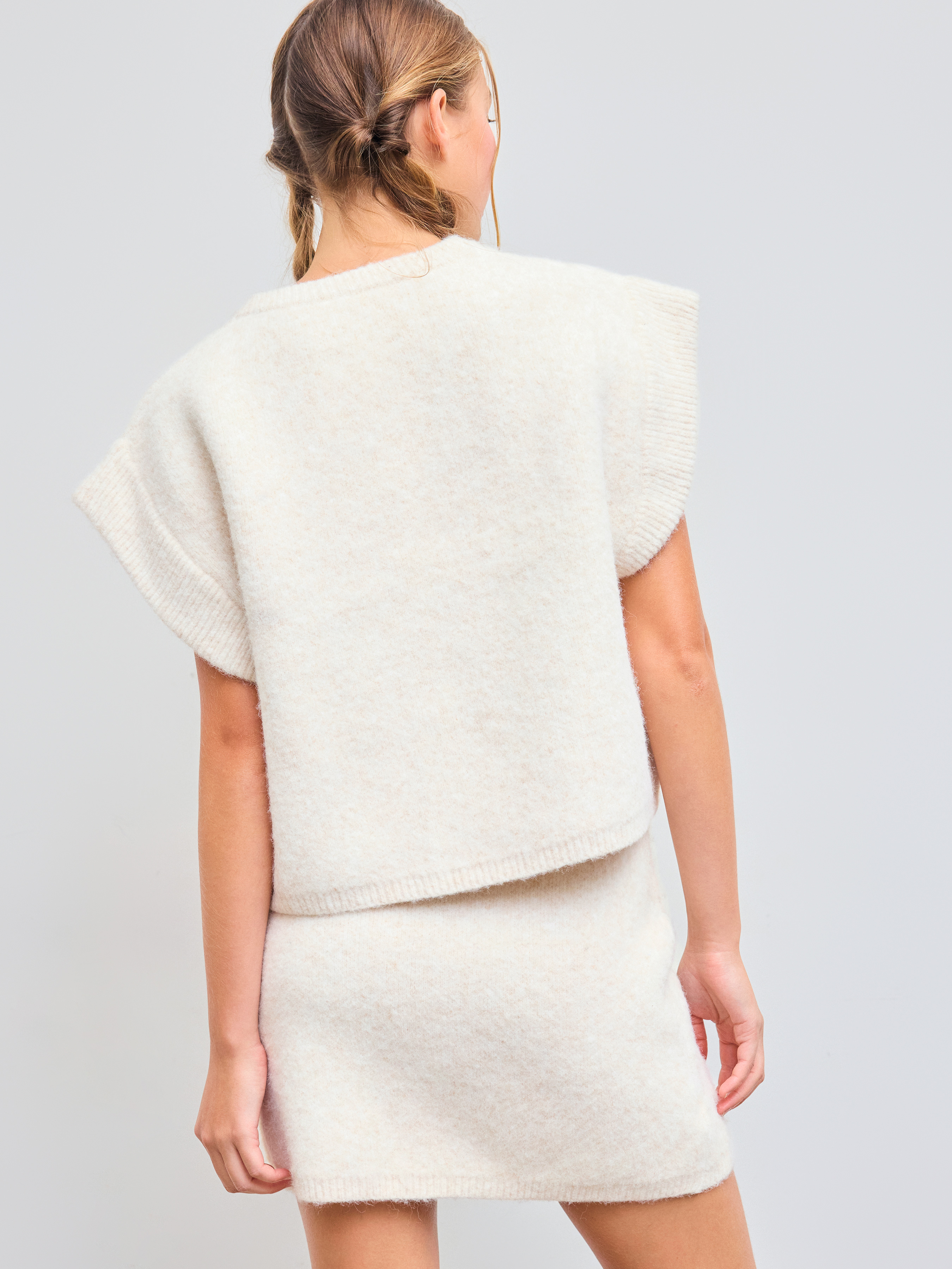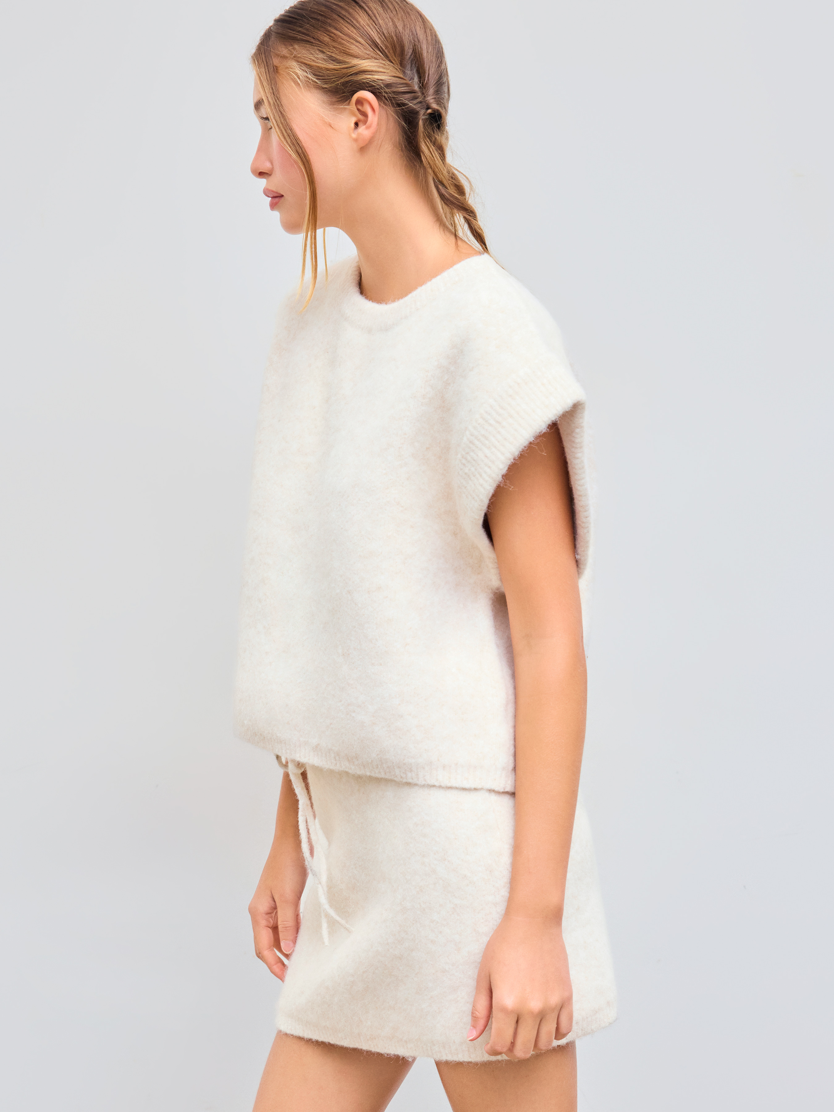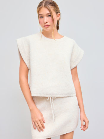 Top in maglia tinta unita con scollo rotondo in misto lana