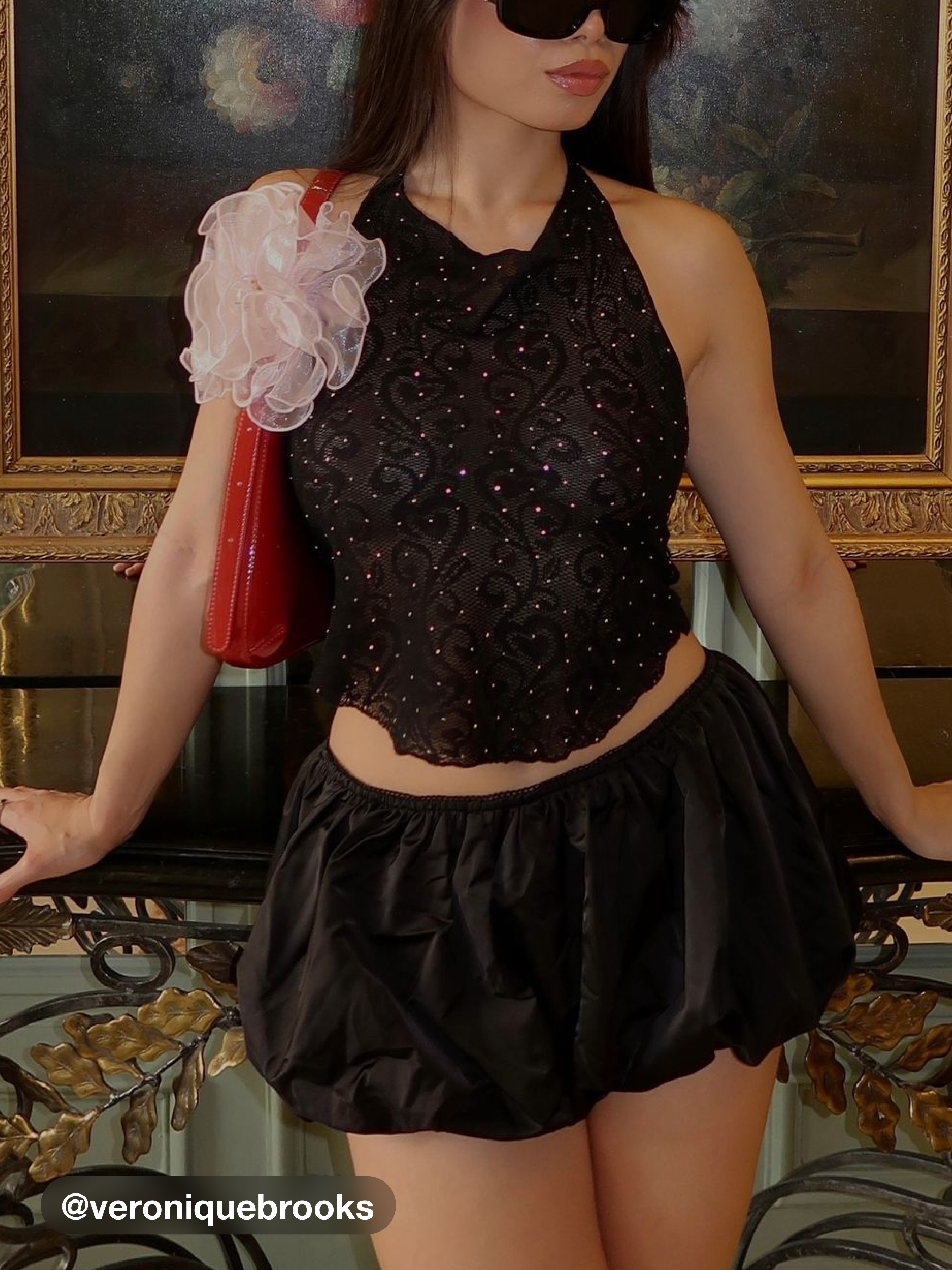 Micro pantaloncini intrecciati a vita media con orlo a bolla