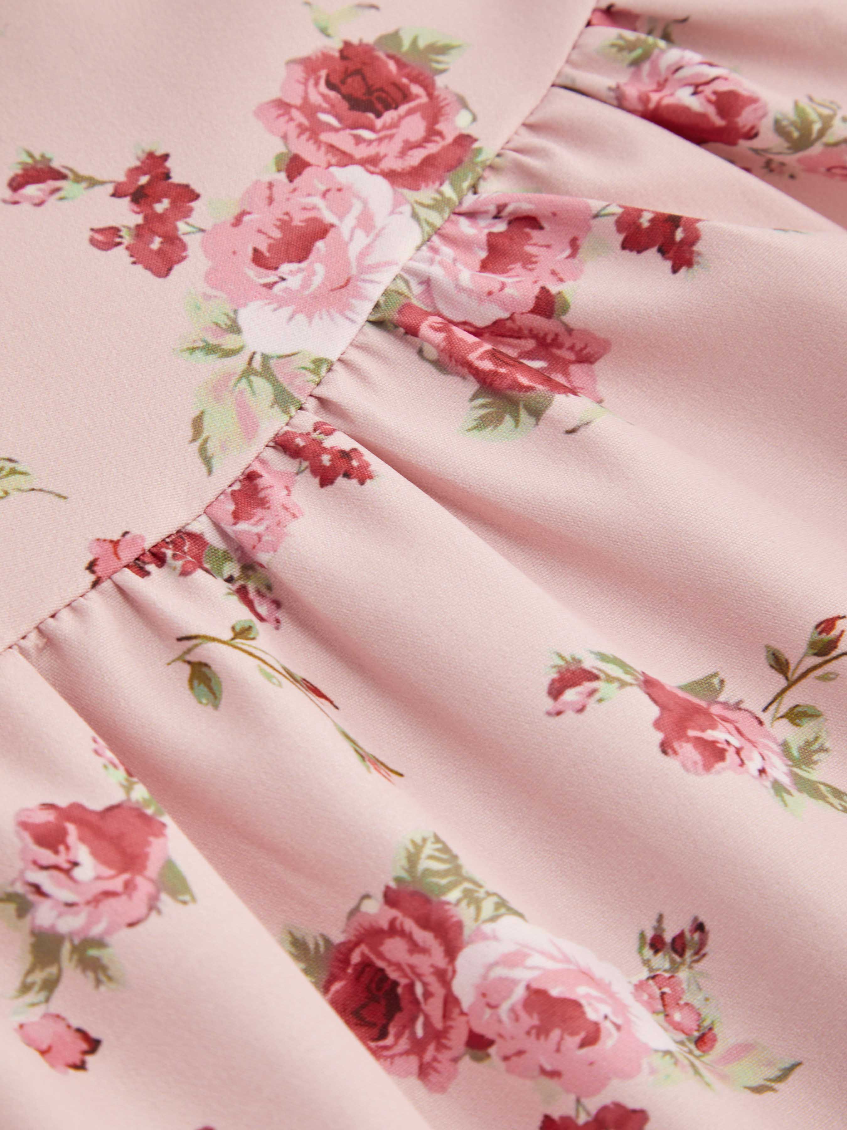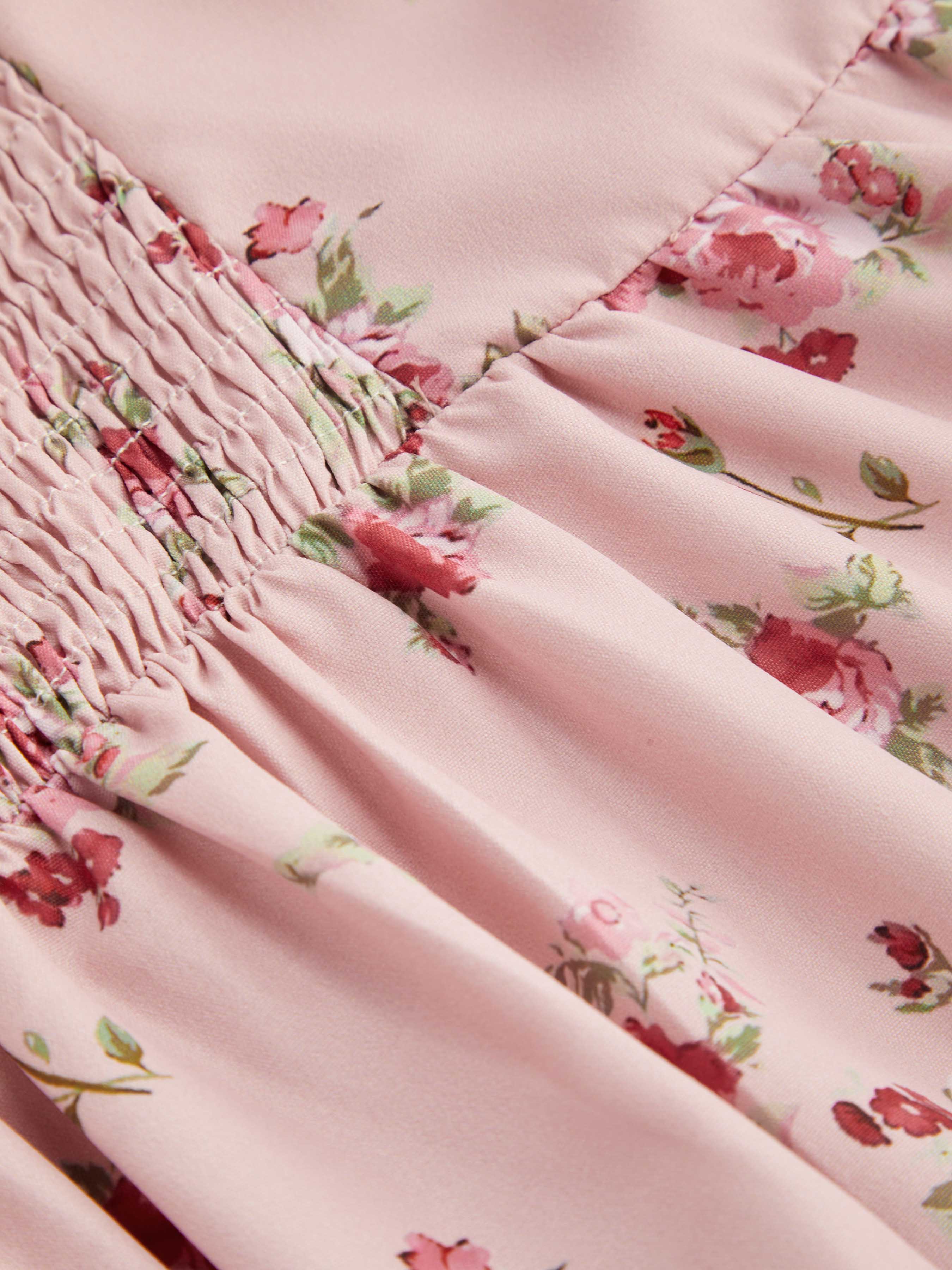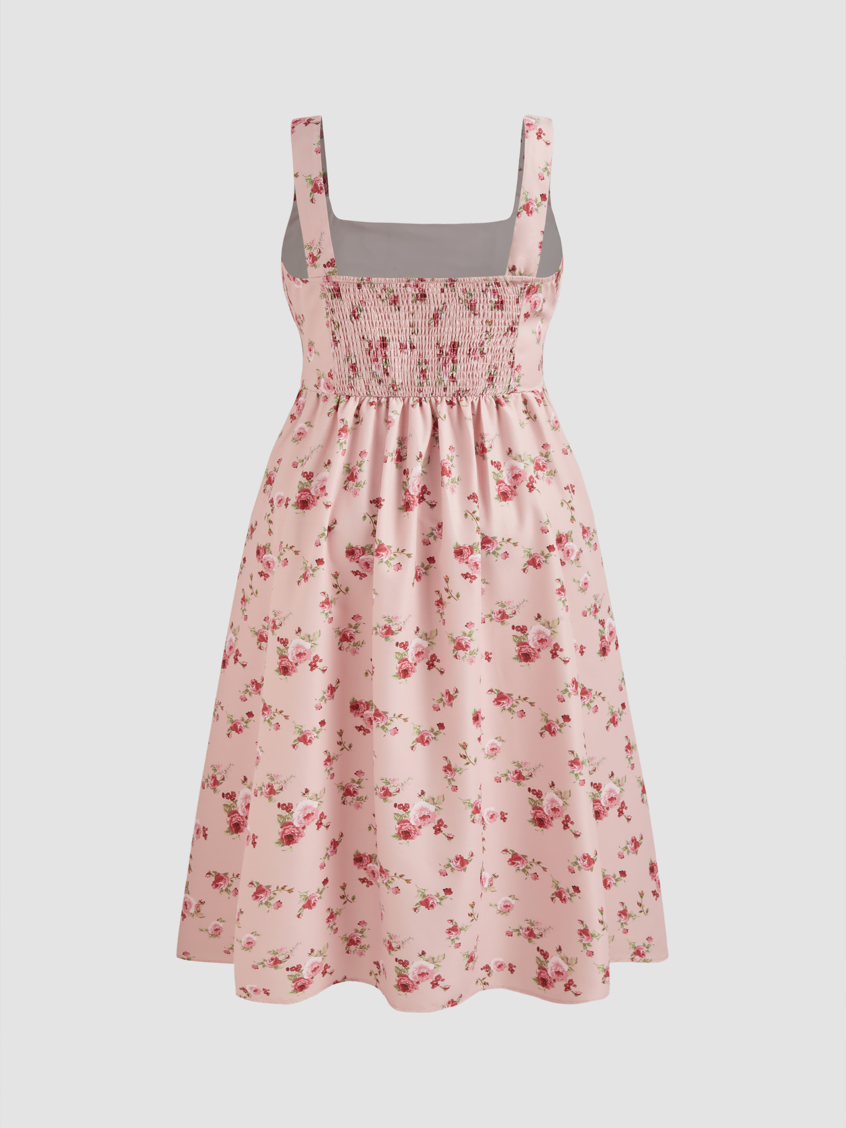 Tessuto con collo quadrato Corsetto floreale annodato con volant Midi Dress Curve & Plus