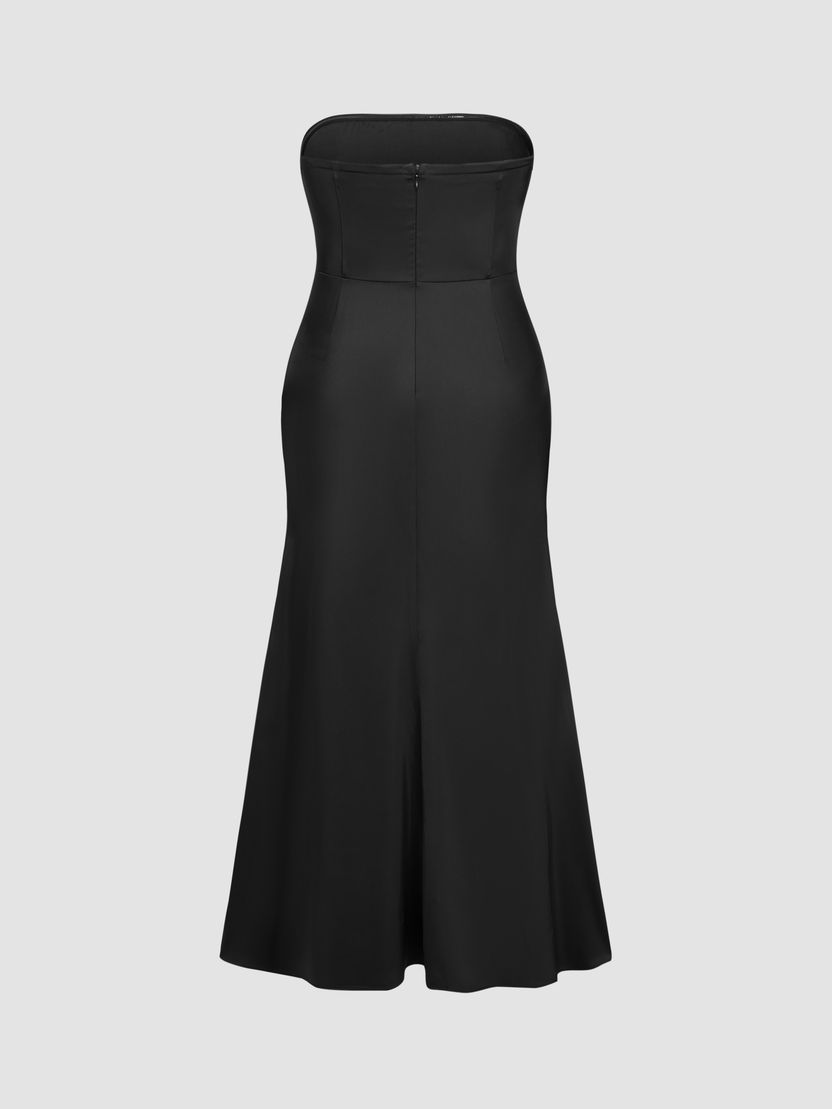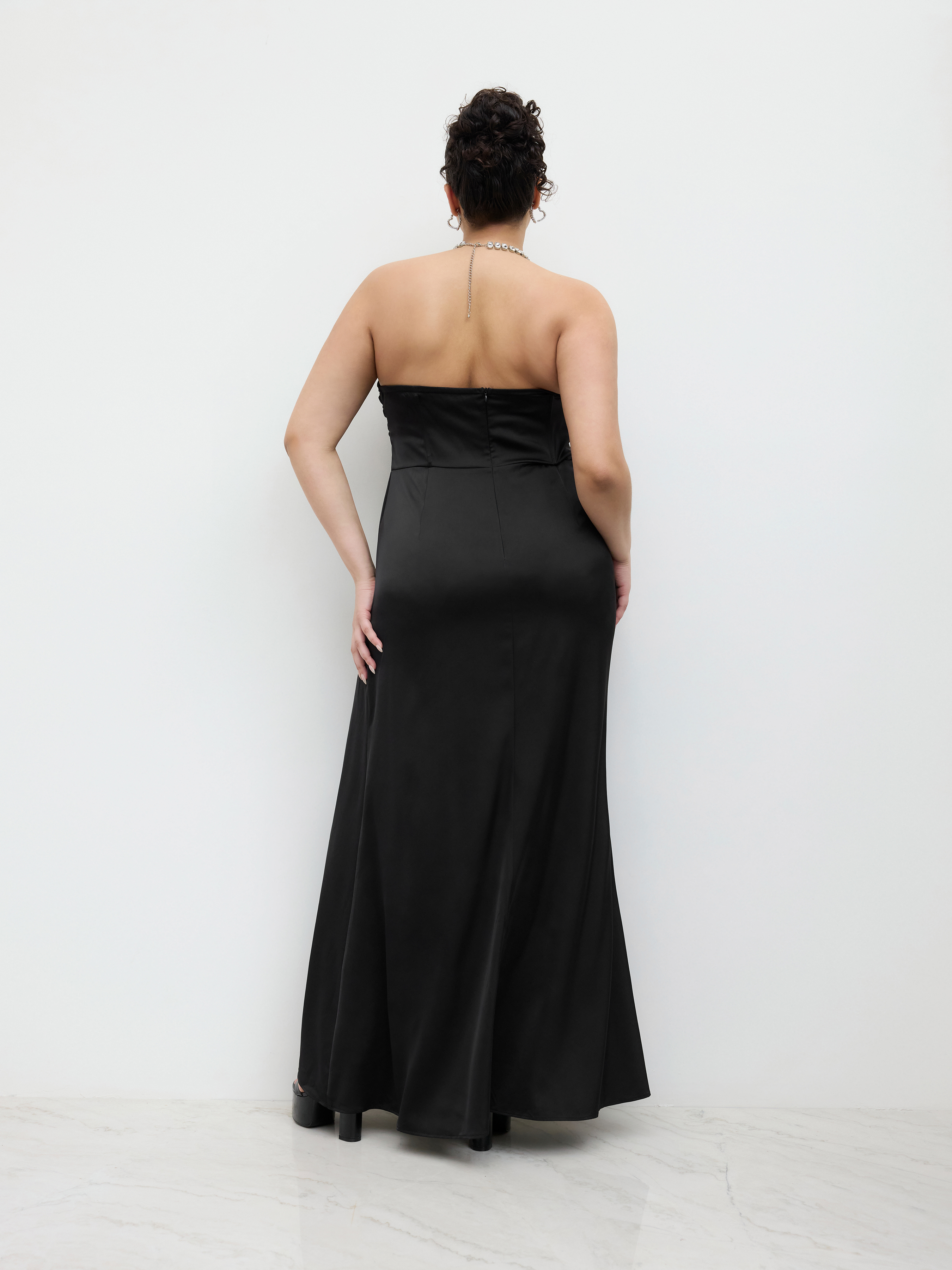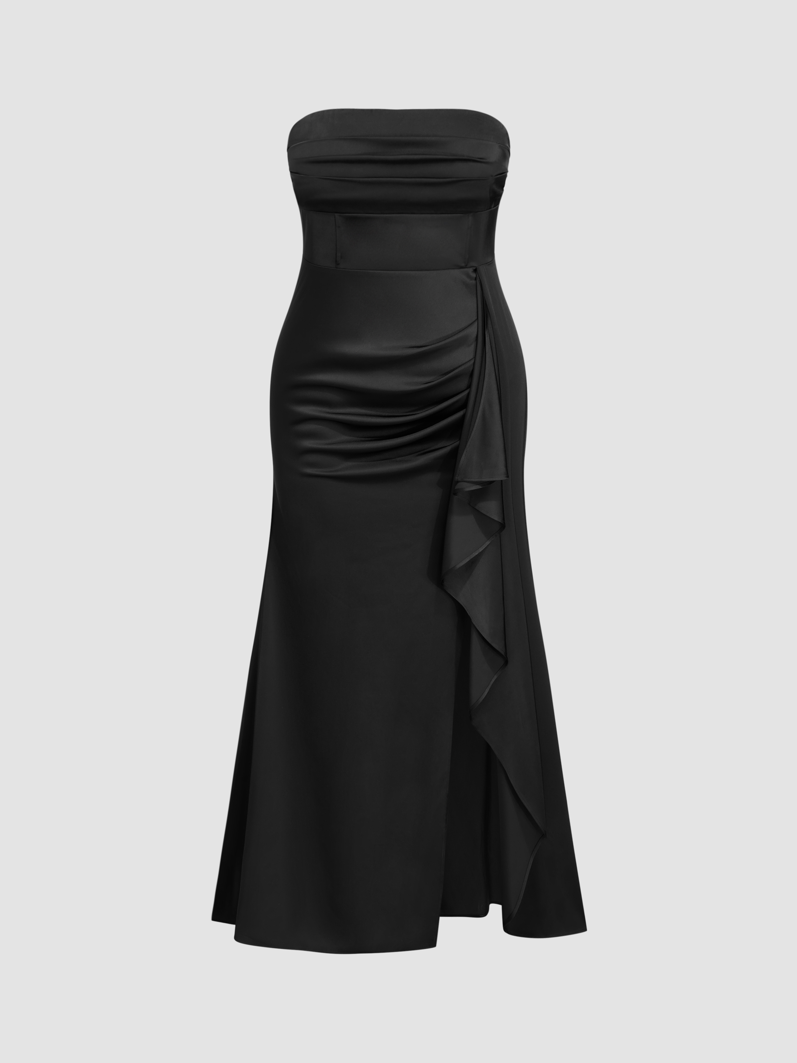 Abito Lungo Maxi con Volant e Spacco Arricciato Bandeau Curve & Plus