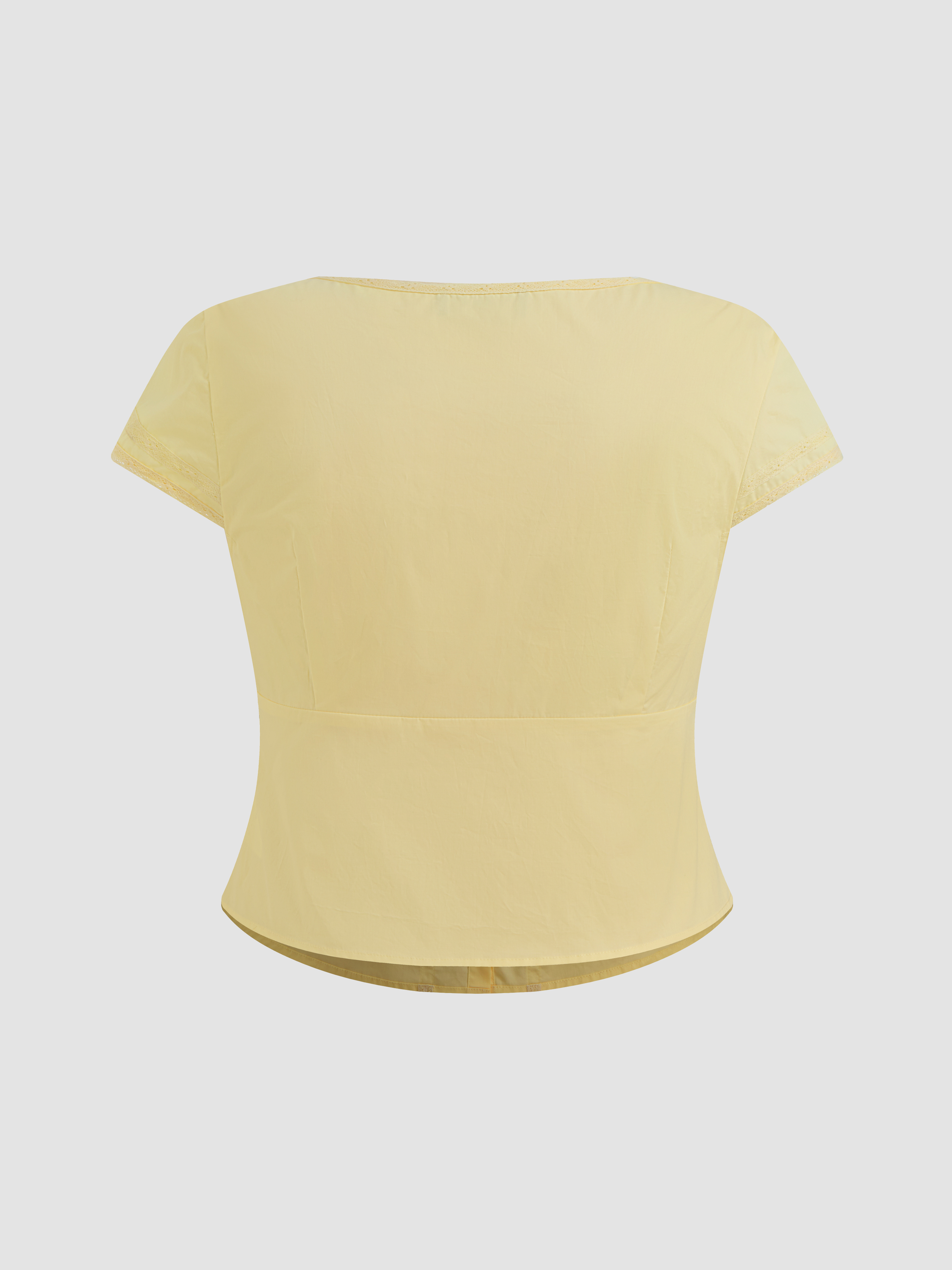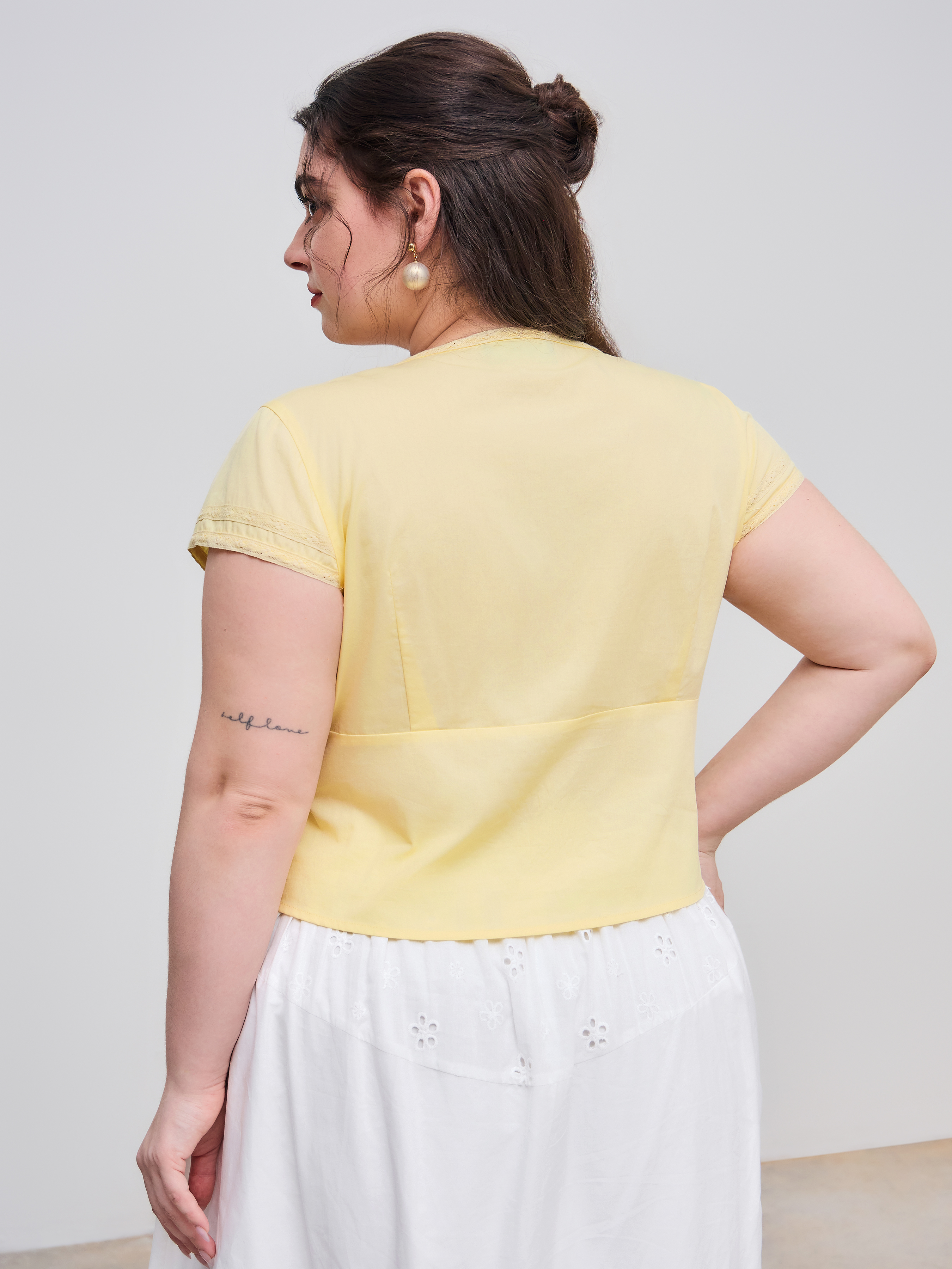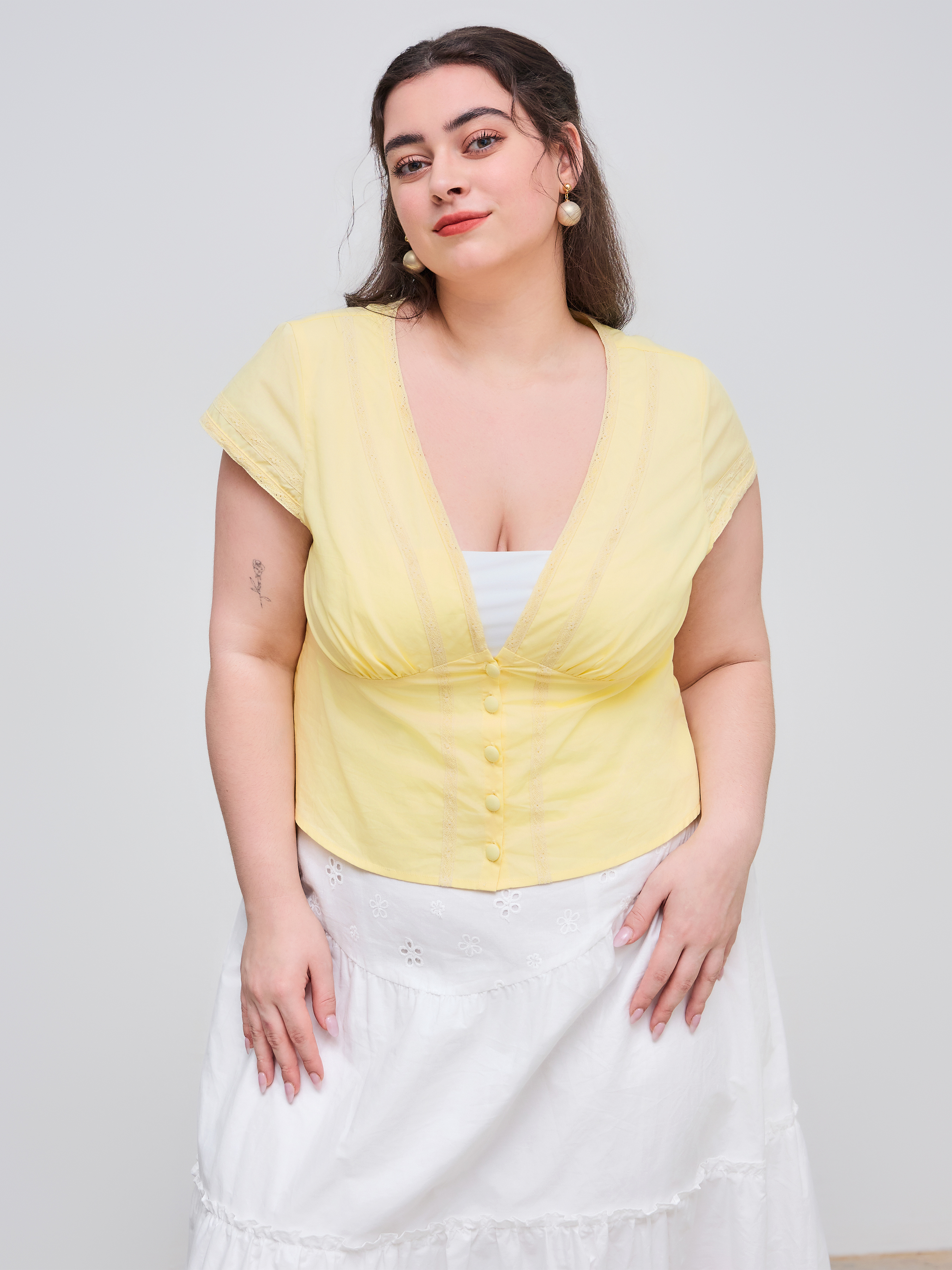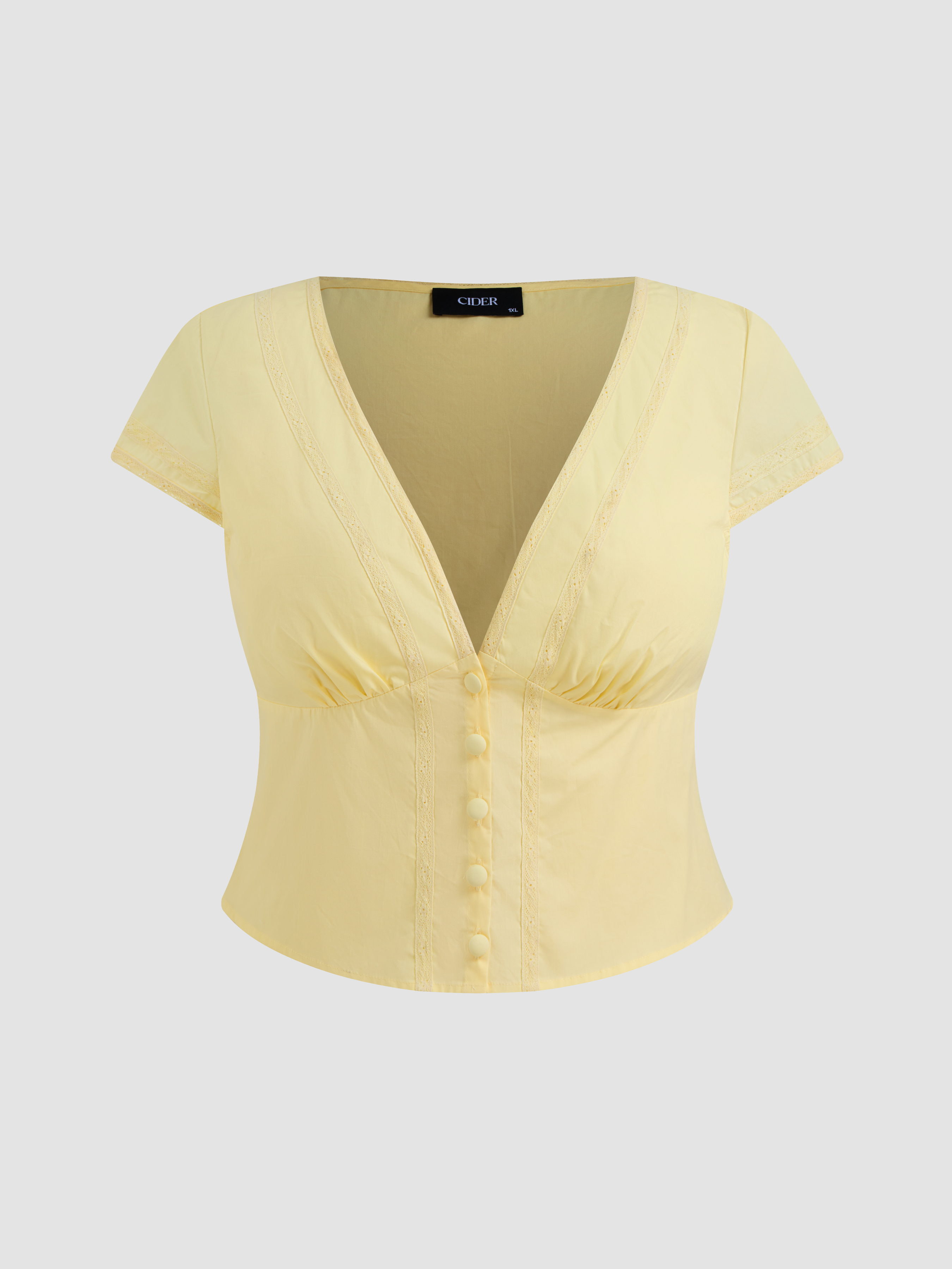 Camicetta con scollo a V e bottoni solidi a maniche corte Curve & Plus