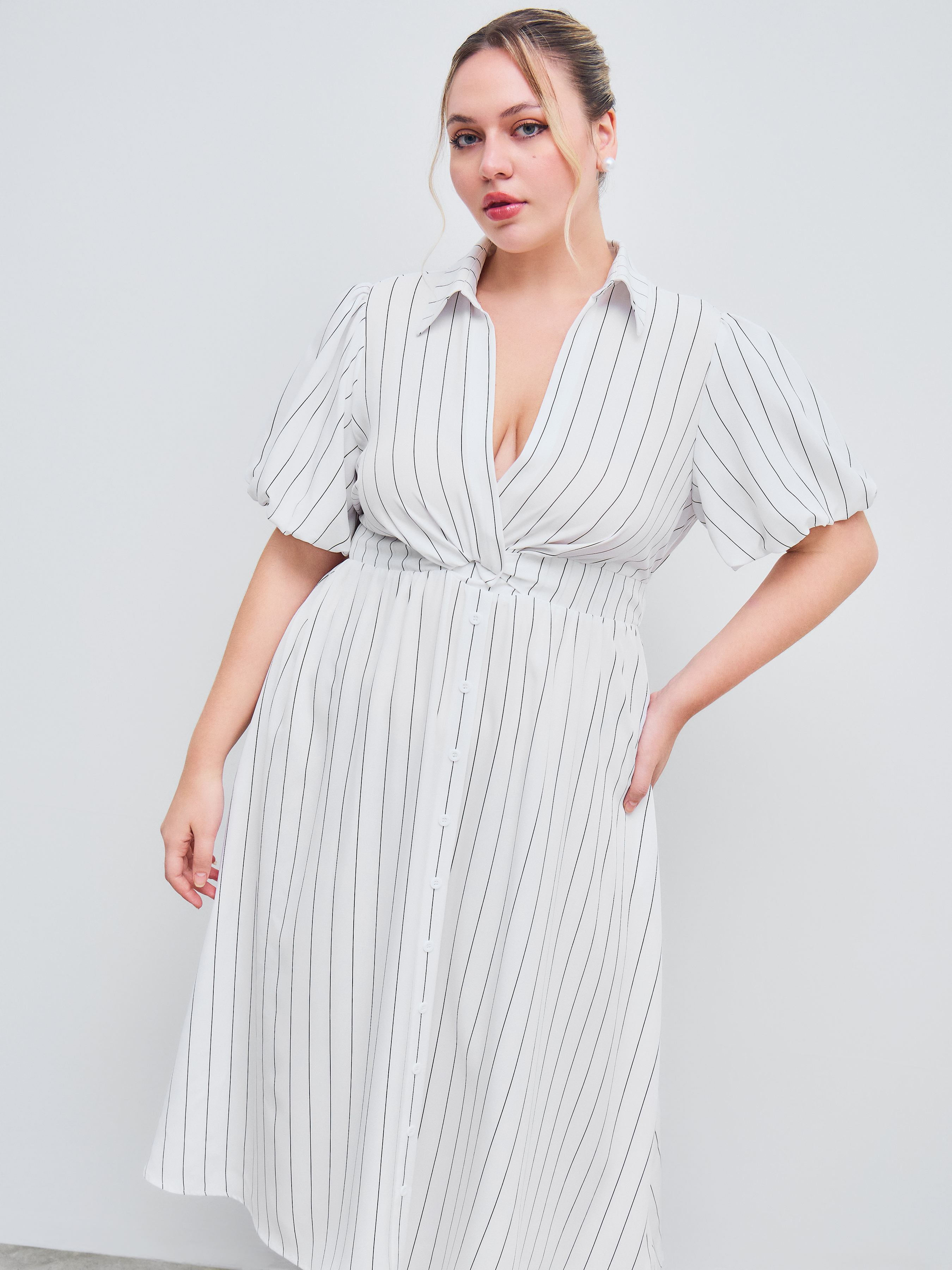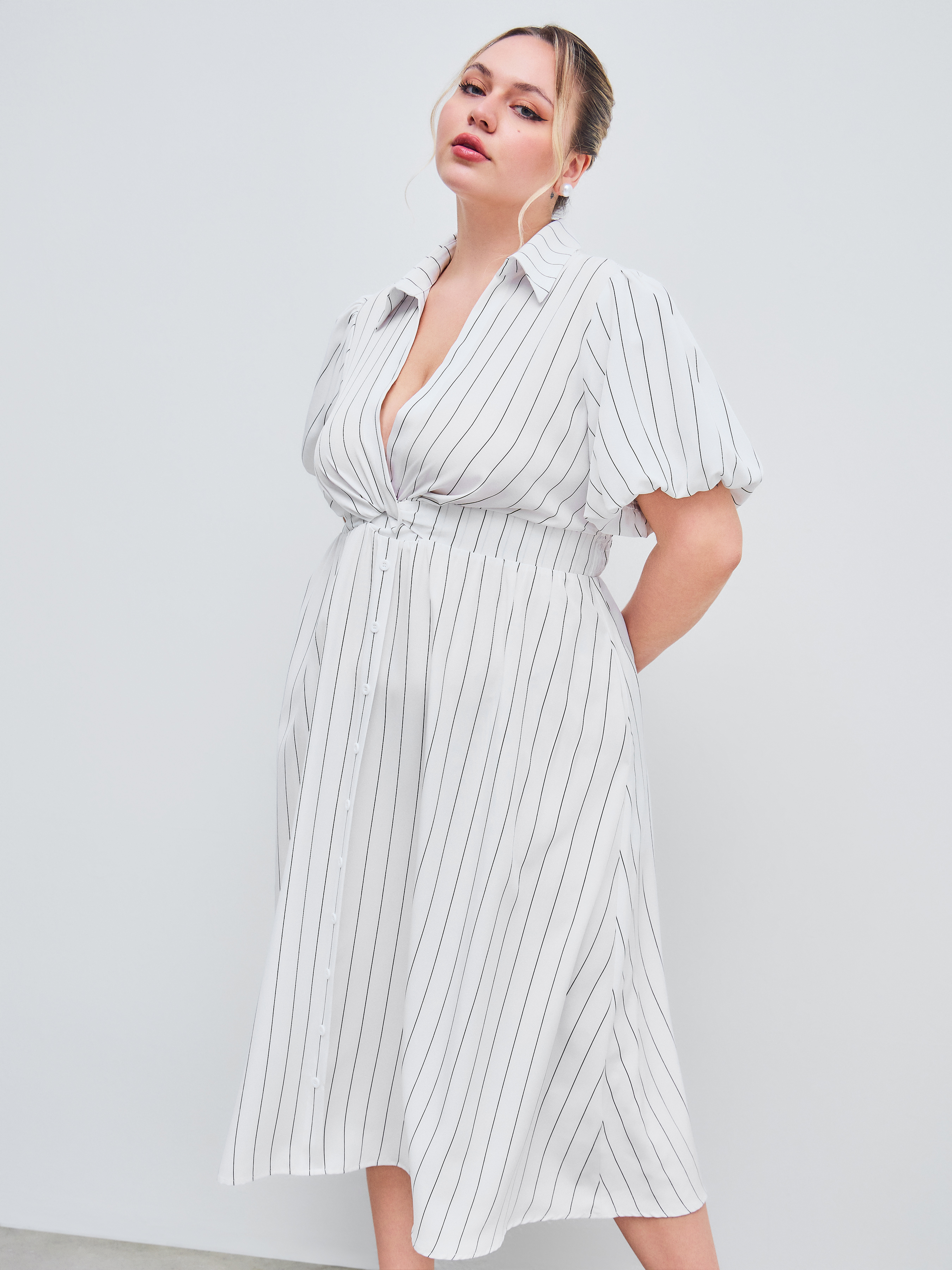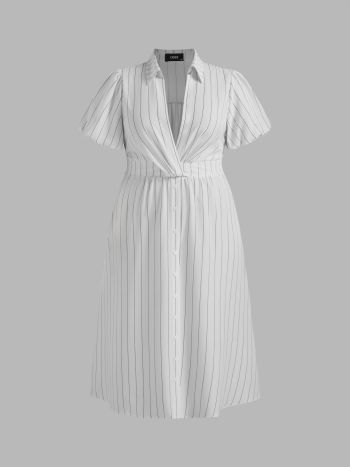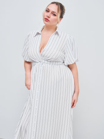 Camicia midi intrecciata con scollo a V e tasca a righe Curve & Plus